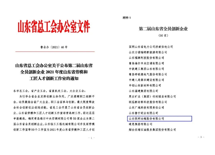 onor Upgraded! Humon Smelting Co., Ltd. Was Rated as a "Shandong Province All - Staff Innovation Enterprise"